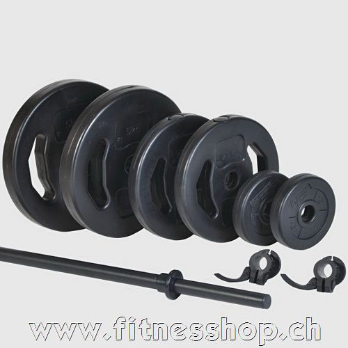 Das Original-Langhantelset aus dem BODYPUMP Programm. Hantelstange und Gewichte sind Kunststoff ummantelt und schützen daher den Bodenbelag. Hantelscheiben mit Stahlsandfüllung. Schnellverschlüsse zum einfachen Wechseln der Hantelscheiben.