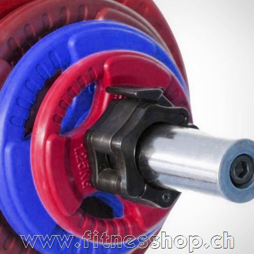 Schnappverschluss wurde so entworfen, dass der Stellring auch bei wiederholten Abwürfen der Langhanteln bestens hält.