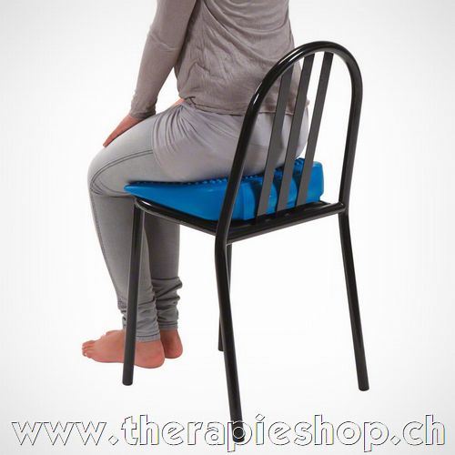 Die Keilform fördert eine richtige Haltung und Ausrichtung beim Sitzen an einem Schreibtisch oder Tisch. Es ist ein aufblasbares, dynamisches Kissen, das die intrinsische Rumpfmuskulatur aktiviert, um die Wirbelsäule zu unterstützen.