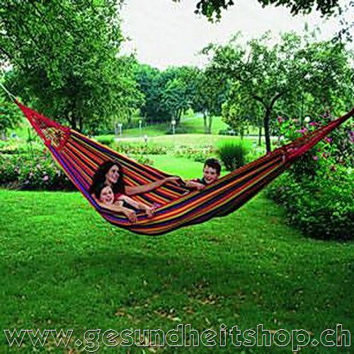 Diese riesengrosse, superbreite Hängematte bietet Platz für die ganze Familie - und natürlich auch für Junggesellen, die noch viel Auslauf brauchen ...