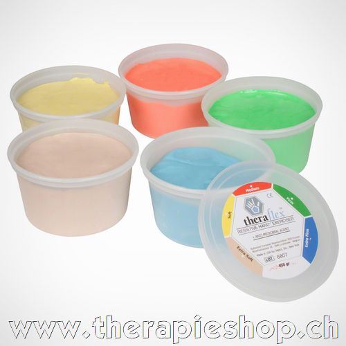 Zur Mobilisierung und Kräftigung der Finger und Hände nach Operationen, Verletzungen und bei rheumatischen Beschwerden. Therapie-Knete lässt sich auch im Sinne der Handtrainer einsetzen.