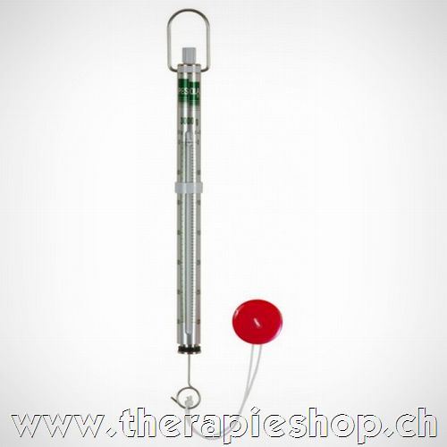 Geeignet für myofunktionelle Therapie (MFT). Ausgestattet mit einer speziellen Aufhängeöse, die das ungewollte Aushängen der Schnur verunmöglicht, sowie mit Rückschlagdämpfung und Schleppzeiger (+ 1 Reserve), zur Ablesung der maximal erzeugten Rückhaltekraft. Zusammen mit Logopädinnen entwickelt und getestet. Genaue handliche Federwaage mit robustem, eloxiertem und abriebfreiem Aluminiumrohr sowie langer Präzisionsskala mit hoher Auflösung. Tara- und Nullstellvorrichtung sowie dreh- und schwenkbarer Aufhängebügel. Immer einsatzbereit, ohne Batterien. Ein bewährtes Schweizer Qualitätsprodukt vom Weltmarktführer.
