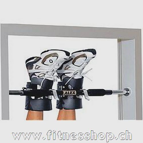 Gravity boots, aus Stahlblech mit Kunststoffpolstern, zum einhängen in Sprosssenwände, Klimmzugbügel oder Türrecks.