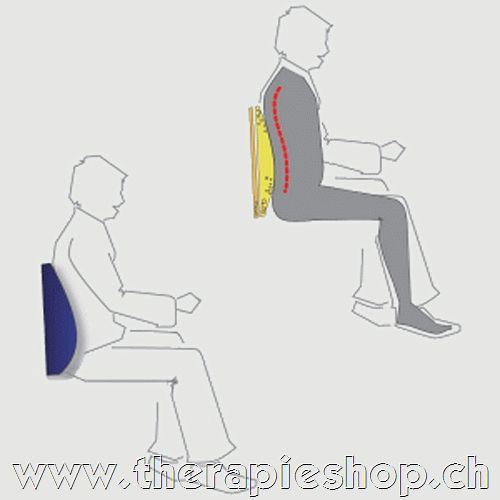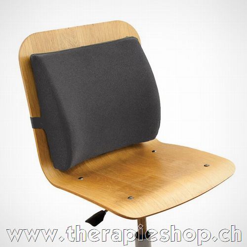 Anatomische Stütze der Wirbelsäule beim längerem Sitzen. Einfache und schnelle Befestigung auf gewünschter Höhe. Überzug aus Polyester, waschbar bei 40°. Grösse: 37 x 33 x 12 cm.