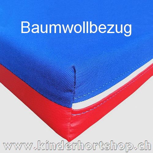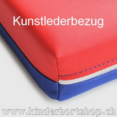 das rote Kunstleder ist ideal für die Sommermonate und ist ausserdem urin- und speichelresistent. Die blaue Seite besteht aus Baumwolle und kann gut in den Wintertmonaten benutzt werden.