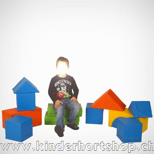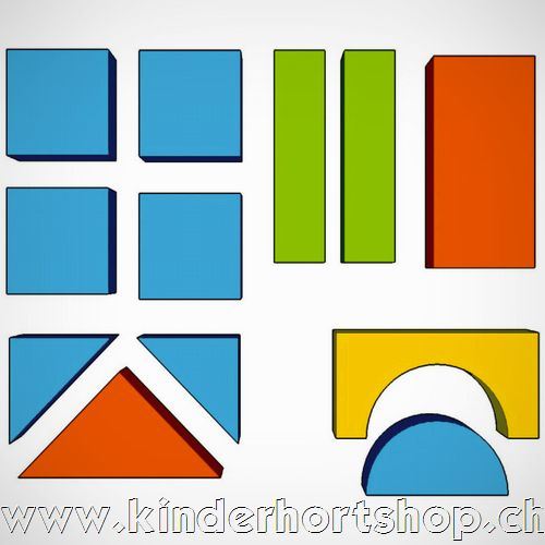 Durch die Reduktion der Formen und Farben auf ein Minimum werden Burgen, Bauten und motorische Strecken zum Toben und Spielen schnell, einfach und mit viel Freude gebaut.
