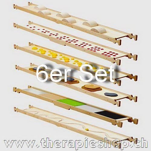 Inhalt: 6 Balancierbretter: Äste, Zehner Schritt, Waldboden, Feldsteine, Materialmix, Flusslauf.