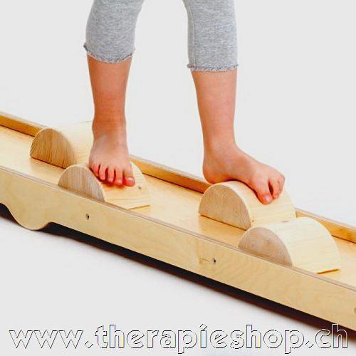 Die fest am Balancierbrett angebrachten Holzelemente aus Fichte sind unbehandelt und vermitteln ein echtes Holzgefühl.