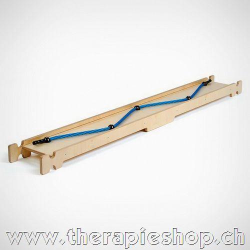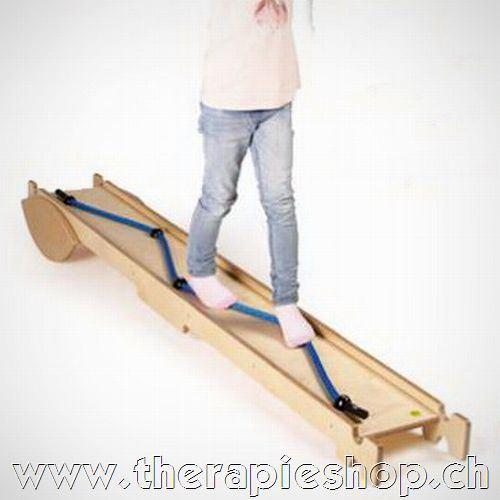 Das Balancierbrett mit dem Zick-Zack-Seil fordert das Balanciergeschick gleich doppelt heraus.