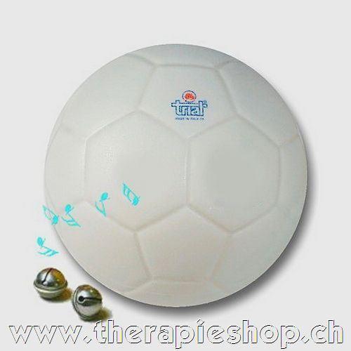 Spezial-Fussball für Blinde und Sehbehinderte. Auch für Sehende werden diese Blinden- und Rhythmikbälle zu einem Erlebnis: Spielen mit geschlossenen Augen, den Weg mit den Ohren verfolgen. Farbe weiss