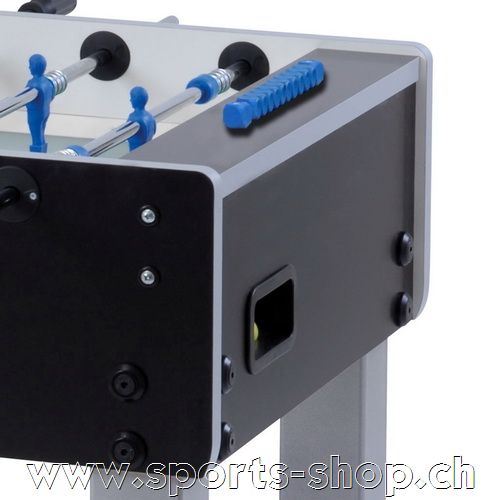 - sandgestrahlte Glasspielfläche in Turnierqualität - Spielerstangen mit Federn und besonders griffigen Kunststoffgriffen - 25mm Korpus aus MDF / Mitteldichte Faserplatte - 9x9cm starke pulverbeschichtete Metallfüsse, mit Kunststoffabdeckung, stabil und rutschsicher - Spielerstangen aus kalt gezogenem Stahl, 16 Durchmesser und 2,3mm Wandstärke - aufgegossene Spielerfiguren in rot/blau, sorgen für mehr Stabilität da keine Sollbruchstelle - Torzähler in rot/blau - Kugellager
