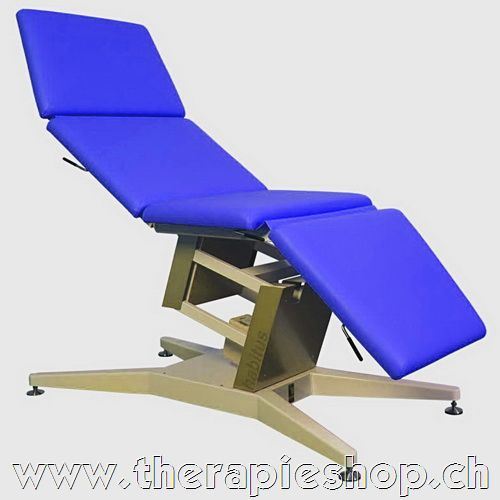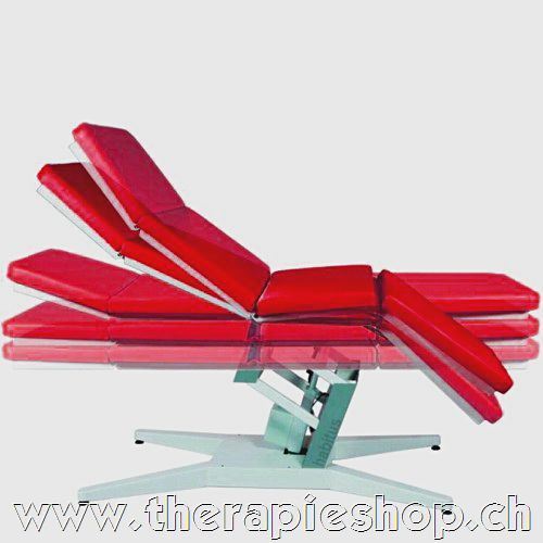 Der starke Elektromotor und das bewährte Gasdruckfedersystem bringen die vierteilige Liegefläche schnell in die optimale Position für die Behandlung. Ob liegend oder sitzend, die geformten Polster ermöglichen Entspannung in jeder Lage.