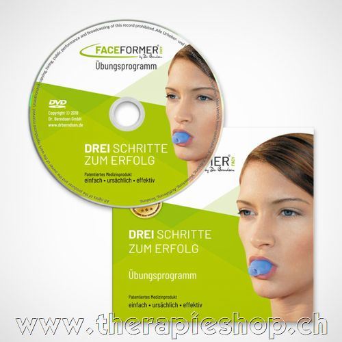 Die Trainings-DVD bietet einen jedermann verständlichen Überblick über die Übungseinheiten. Sie ist hervorragend geeignet für das Training in Eigenregie und eine ideale Ergänzung für Therapeuten begleitete Übungen. Die DVD enthält das Trainingsprogramm zur neurophysiologischen FaceFormer Funktionstherapie nach Berndsen und Berndsen. Regelmässig ausgeübt, nimmt das FaceFormer Training rasch wirksamen Einfluss auf die Spannung von Gewebe, Muskeln und Haut in Mund, Rachen und Gesicht. Zentraler Inhalt der FaceFormer Therapie sind eine Reihe einfach auszuführender Übungen mit dem FaceFormer